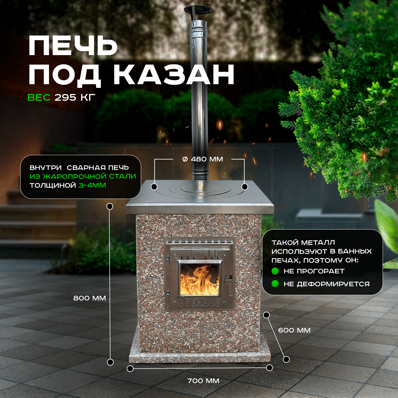 Гранит отличается вековой прочностью, устойчивостью к повреждениям и легкостью в уходе, плюс не абсорбирует запахи и грязь. Нержавеющая сталь AISI 304 не поддается коррозии и выдерживает перепады температур.